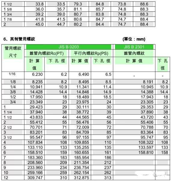 絲錐和鉆頭的參數(shù)對(duì)照表--隔熱管托