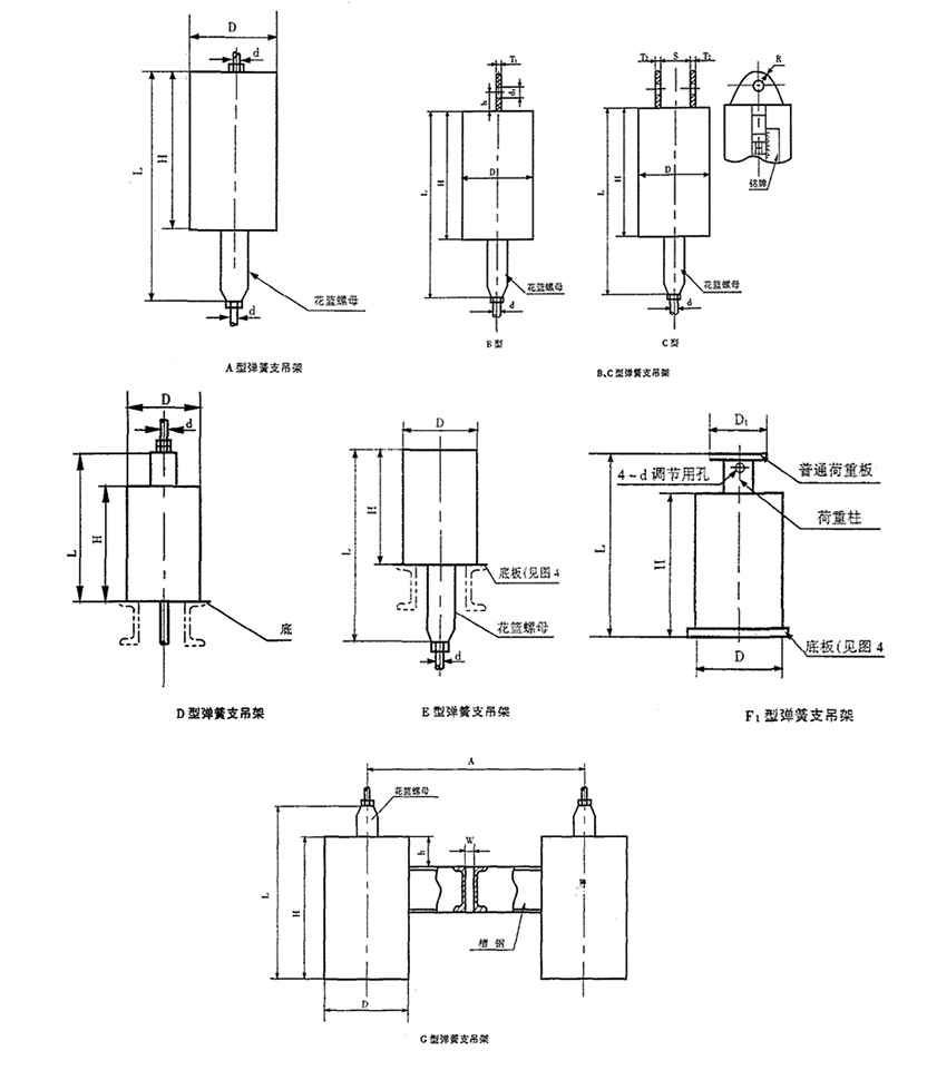 管道支吊架用彈簧壓死時的壓縮值(全壓縮值或稱極限壓縮值)用Fb表示,對應的荷重(即極限荷重)和Po 表示。