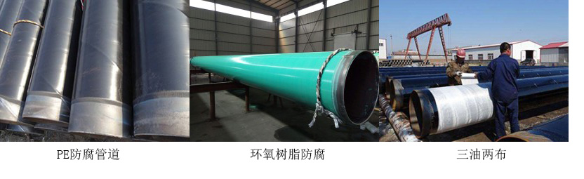 3PE防腐:第一層環氧粉末(FBE>100um),第二層膠粘劑(AD)170~250um,第三層聚乙烯(PE)2.5~3.7mm。三種材料融為一體,并與鋼管牢固結合形成優良的防腐層。管徑范圍Φ60~Φ1420