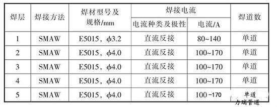 表5 基層焊接工藝參數