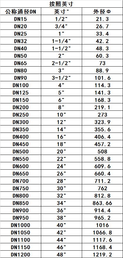 管道管閥中DN、英寸、Φ及對(duì)照表_滄州五森管道有限公司