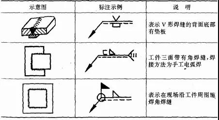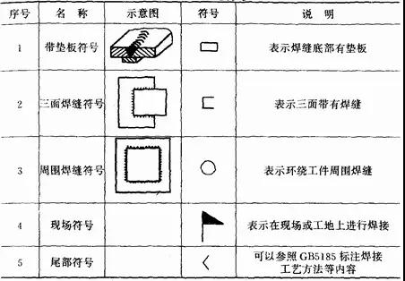 輔助符號是表示焊縫表面形狀特征的符號,見表1—5。應用示例見表1—6。