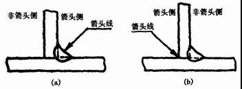 (a)焊縫在箭頭側 (b)焊縫在非箭頭側