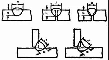 熔焊時,在單道焊縫橫截面上焊縫寬度(B)與焊縫計算厚度(H)的比值(ф=B/H),叫焊縫成形系數,見圖1—21。該系數值小,則表示焊縫窄而深,這樣的焊縫中容易產生氣孔和裂紋,所以焊縫成形系數應該保持一定的數值,例如埋弧自動焊的焊縫成形系數ф要大于1.3。