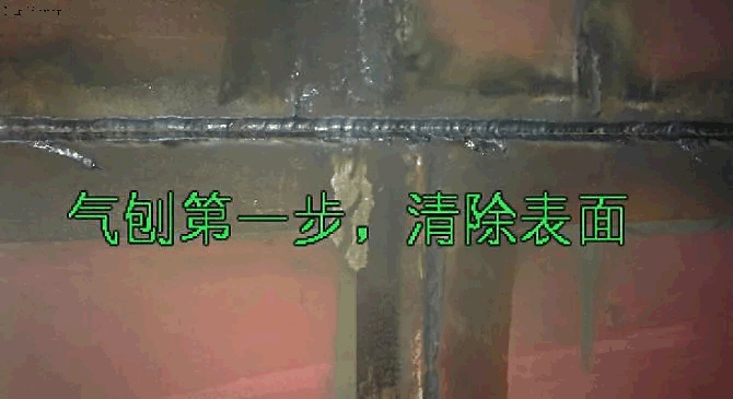 二、深度清理,仔細(xì)刨除加在焊縫中間的焊渣,氣孔。刨到焊縫成銀白色,無缺陷為止。