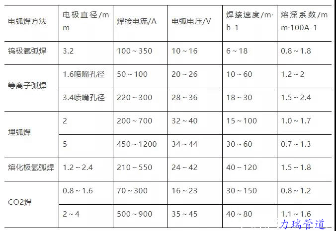 1)隨著電弧焊焊接電流增加,作用在焊件上的電弧力增加,電弧對焊件的熱輸入增加,熱源位置下移,有利于熱量向熔池深度方向傳導,使熔深增大。熔深與焊接電流近似成正比關系,即焊縫熔深H約等于Km×I。式中Km為熔深系數(焊接電流增加100A導致隔熱管托焊縫熔深增加的毫米數),它與電弧焊的方法、焊絲直徑、電流種類等有關見表1-1。