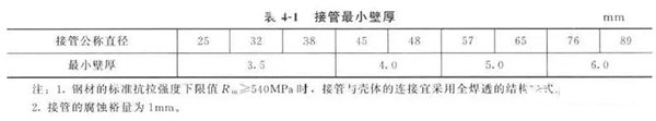 d. 接管最小壁厚滿足表4-1的要求。