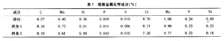 (1)P91鋼管規格為¢325.5mm×29.5mm,焊接材料由AEC提供,包括¢2.4mm的CM-91G焊絲,¢3.2mm和¢4.0mm的CROMOCORD9M焊條,熔敷金屬化學成分見表1。