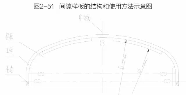 封頭間隙樣板是采用弦長相當于封頭內直徑的間隙樣板檢驗和測量封頭的內表面形狀公差,見圖2-49。
